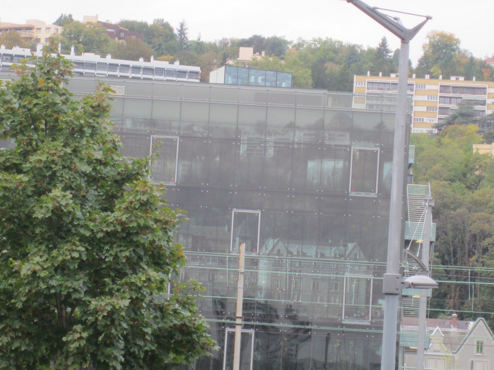 What looks like a reflection in this facade is actually paintings of the buildings on the hillside behind, giving the impression of seeing right through. Image Info