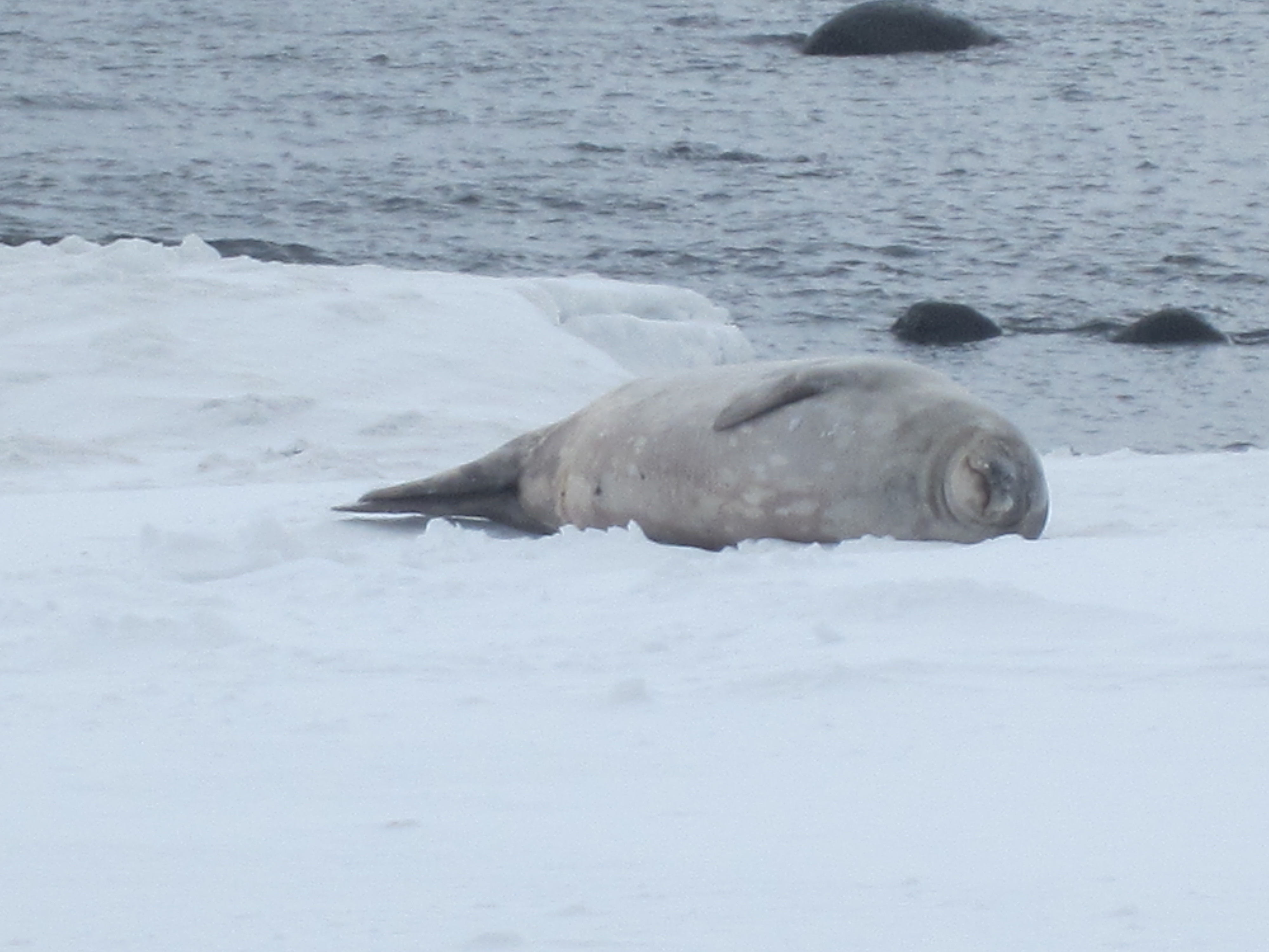 There were 3 Weddell Seals- and a single penguin- resting on the beach