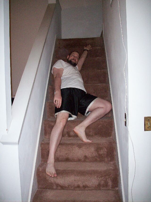 These pictures just fit together here – the stairs up to the master suite and the 2nd bathroom downstairs.