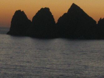 As we were sailing out of the harbor near sunset, we passed the very last rocks at the end of Baja.