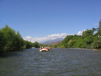 Here is a look back up the river towards the mountains at some of the other boats in our flotilla.